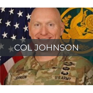 COL Johnson’s operational assignments include Bradley platoon leader in 1st Battalion, 9th Infantry, Republic of Korea; Battalion Adjutant and later a Company Executive Officer in 2nd Battalion, 87th Infantry, Fort Drum, New York, including a deployment to Afghanistan in support of Operation Enduring Freedom; Brigade Assistant Operations Officer, 1st Infantry Division; and Brigade Assistant Operations Officer, 1st Armored Division.